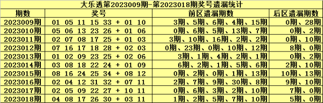 大乐透第2023019期奖号冷温热走势分析(冷码:遗漏值9以上的号码,温码:遗漏值4-9之间的号码,热码遗漏值0-3之间的号码)