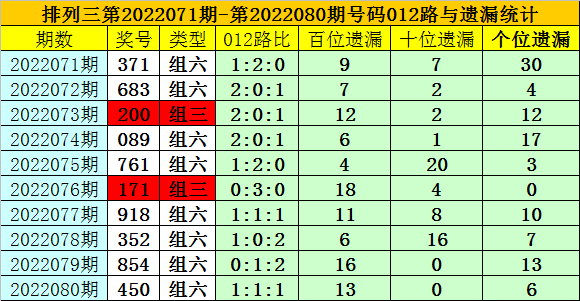 上期回顾:体彩排列三第2022080期奖号:450。,奇偶比1:2,大小比1:2,012比1:1:1。