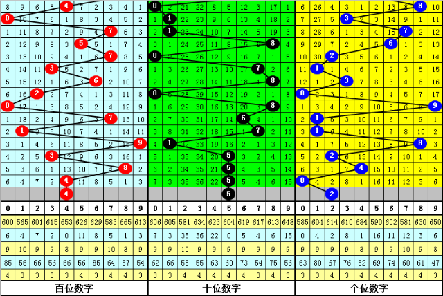 百位走势:近10期在0-9之间出号,跨度为10点,出号比较分散,上期奖号为4,下降4点,本期注意该位重复出现。另外近10期该位大小比为4:6,小号大热,本期小号再出,关注号码4。