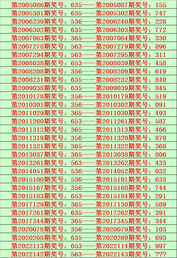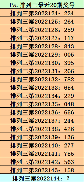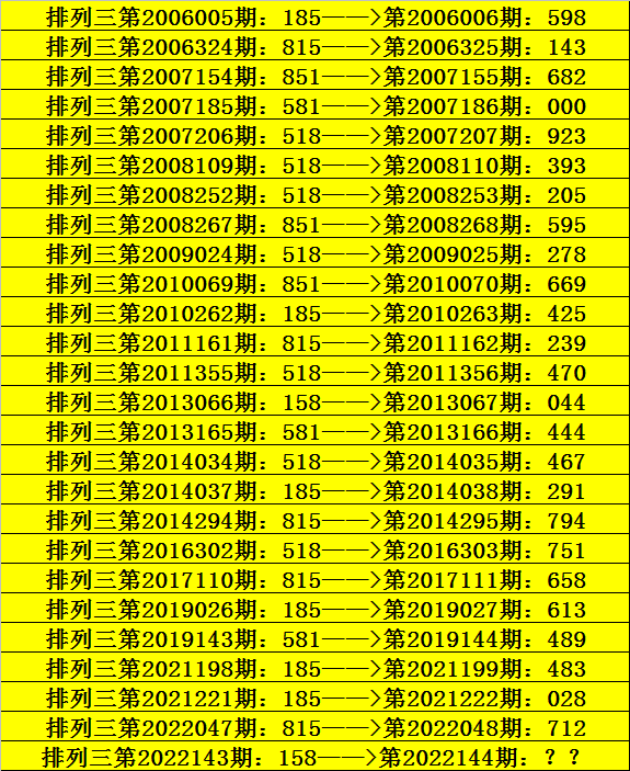 第2022143期排列三奖号为158,历史上该号码直选出现2次,下期奖号分别为:044。