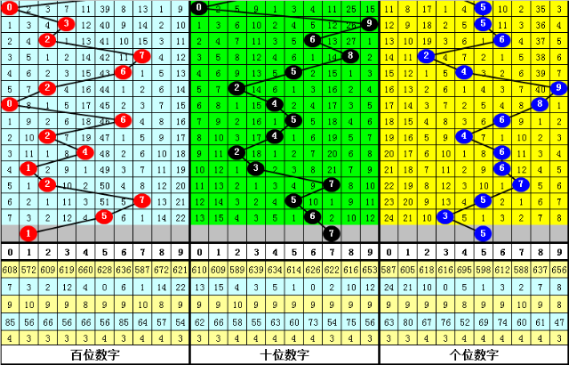 百位:大小比为0:1,奇偶比为0:1,本期参考号码7。