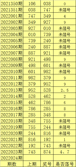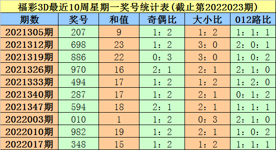 上期回顾:福利彩票3D第2022023期奖号为874。