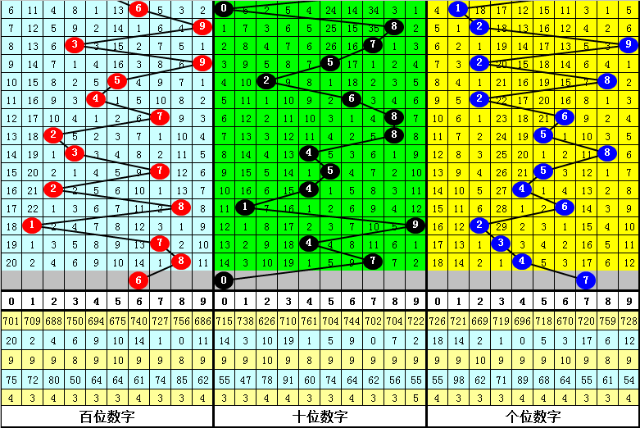 跨度、和值分析:近期跨度主要分布在2-8区域,比较分散,本期预计跨度上升,参考跨度7。和值近期波动范围较大,上期开出和值19,本期预计和值下降,参考和值13。