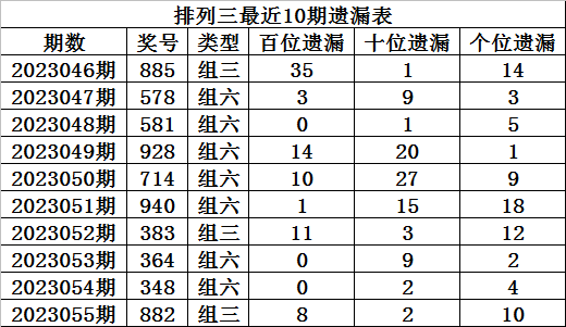 上期回顾:排列三第2023055期奖号:882,组三,直选遗漏总值为20期。