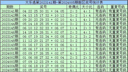 体彩大乐透第24005期奖号开出:03 05 07 09 12+05 08,前区奇偶比为4:1,大小比为0:5,无连码,无重复号码。