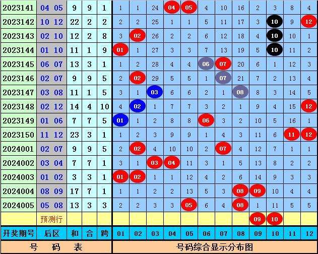 后区:上期奖号为05+08,前9期后区01-12之间的号码开出次数分别为:02开出5次,01、07、08、10、12开出3次,03、04、05、06开出2次,09、11开出。本期后区注意号码01、02、03、07、09、10,重防两码09、10。
