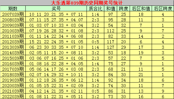大乐透历史同期第2023039期奖号分析: