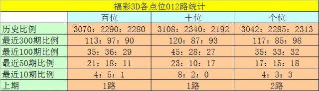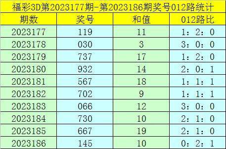 福彩3D第2023187期012路分析