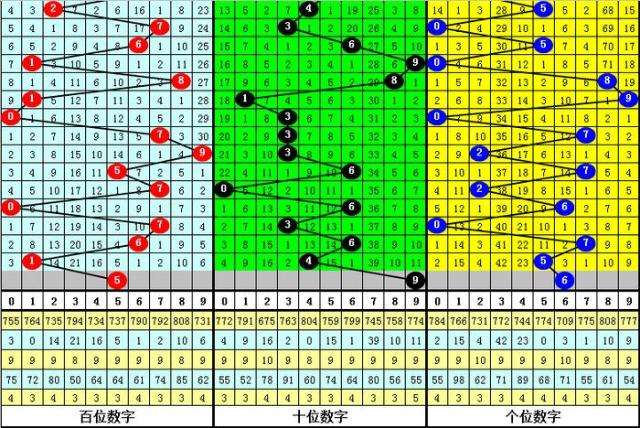 百位分析:该位最近10期开出了4个0路号码、5个1路号码、1个2路号码,1路号码热出,2路号码走冷。本期排除1路号码,参考号码:5。
