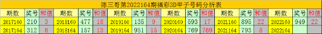 则,第2022164期奖号可以参考第2022160期奖号:949。
