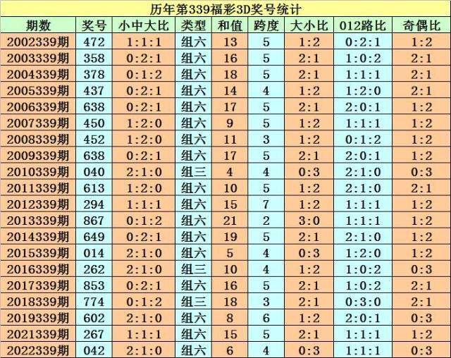 339期程成福彩3D预测奖号:和值跨度大小比分析