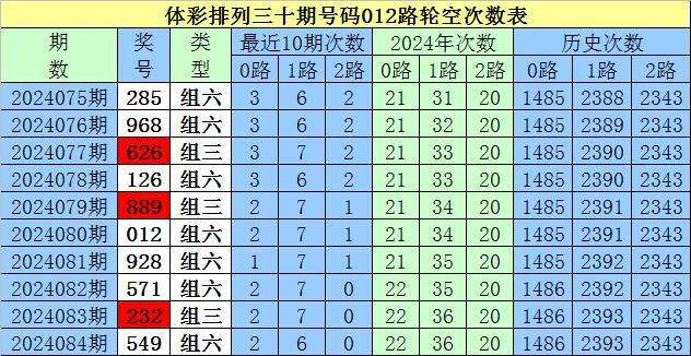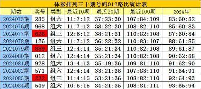 开奖回顾:排列三第2024084期奖号为:549,号码012路比为1:1:1。