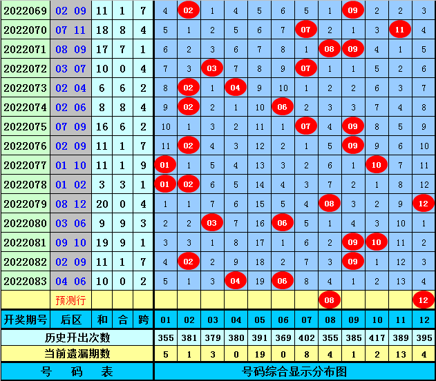 后区5码推荐:02、04、05、08、12