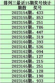 开奖回顾:排列三第2023168期开出奖号:933,其类型为:组三,直选形态为:奇奇奇、大小小、000路、冷温温、合质质。
