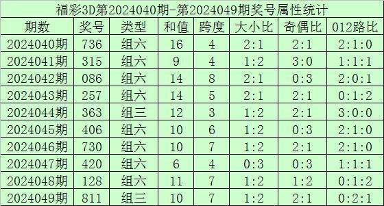 开奖回顾:福彩3D第2024049期开奖号:811,其中奖号和值:10,奇偶比2:1,大小比1:2。