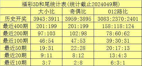 和尾大小分析:在前50期开奖中和尾大小比为19:31,小和尾表现较热;在前20期开奖中和尾大小比开出9:11,和尾大小次数基本相当,本期适当关注大和尾出现。
