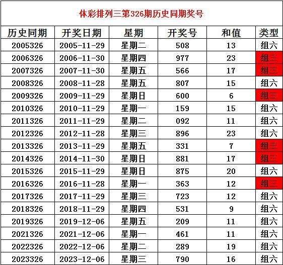 2024年12月5日排列三第326期开奖,历史同期分别开出奖号: