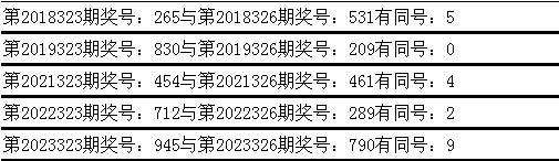 与前期历史同期奖号对比分析,在最近五年开奖中,第323期同期奖号与第326期同期奖号都出现了相同号码: