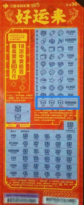 4月13日,清远彩市传出中奖喜讯:一彩民在清远市清新区44180535福彩销售站点购买了30元面值的“好运来”刮刮乐即开票,幸运刮出一等奖,中奖奖金80万元。