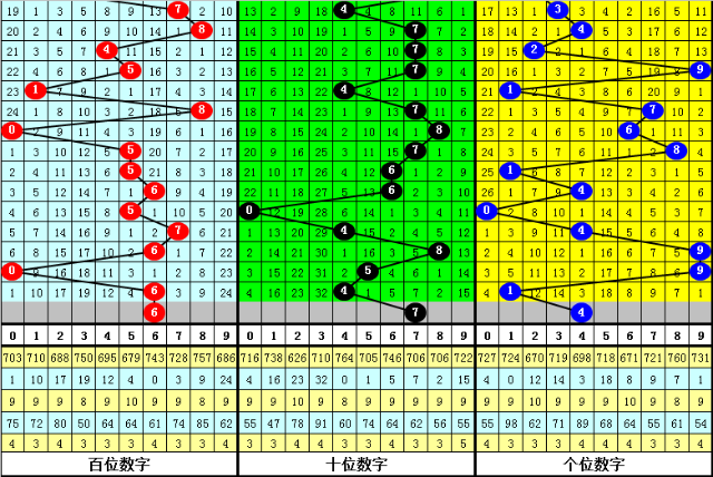 第二位上期开出奖号4,走小1点,本期注意该位走大,关注号码7。