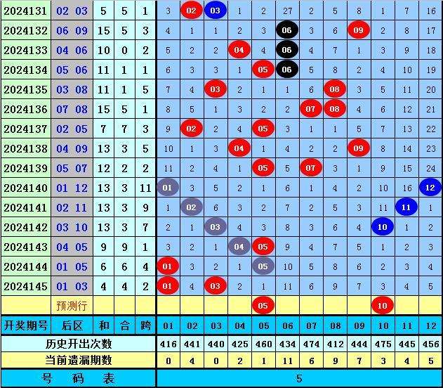 后区分析(定义:01-04为一区,05-08为二区,09-12为三区):上期后区开出奖号01和03,全在第一区出现,最近10期后区三个区间落号个数比为9:7:4,本期后区注意第二区和第三区号码出现,关注两码05、10。