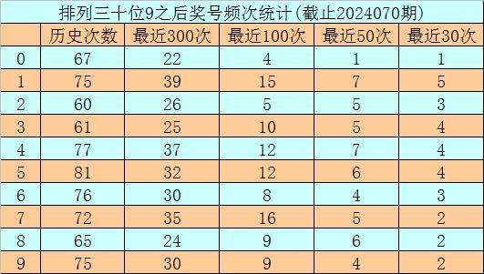 第二位杀号:第二位上期开出奖号为9,该位历史上奖号9开出了710次,最近100次第二位奖号出现9后,下期落号0-9次数从高到低分别为:号码7→16次,1→15次,4、5→12次,3→10次,8、9→9次,6→8次,2→5次,0→4次。