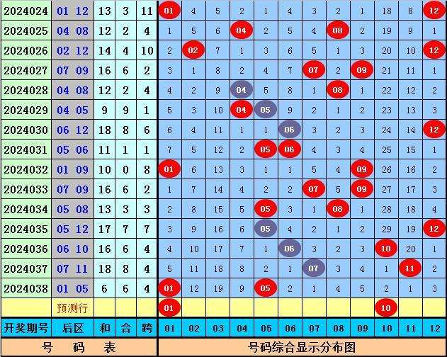 三少第2024039期体彩大乐透后区尾数分析:上期后区开出奖号01和05,奖号尾数为1路和2路,本期后区排除2路尾数号码,五码参考01、07、10、11、12。