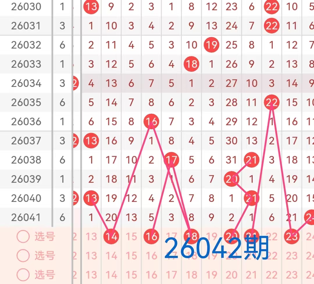 2. 二区(13-24):上期该区间开出一个号码24,号码24在遗漏15期后再次开出,且与第三区间号码25形成一组二连号的形式。根据历史开奖来看,近期该区间活跃度较低,本期预计会有1-2个号码会回补开出。特别是那些遗漏次数较大的号码14、18、20和该区间内近期表现较好的号码16、21这个号码在走势上表现出一定的稳定性,且与前几期出号形成呼应,有望出现在本期开奖中。