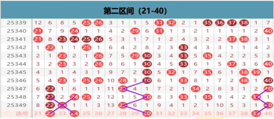 本区上期开出4码的区间布局,那么再本期我们优先关注的就是区间的形态出号,目前区间的重码不断,所以在22 23 28 40的位置上我们是要考虑一码走重的可能的,这个位置上要考虑容错的可能,在空位上我们关注的就是区间的同形态放空的出号点位,30 33的同路放空,我们选择一码的下方出号,在33 35的位置上我们也是选择一码的出号的可能性,其他的位置上我们就是防守的出号点位了,不是我们考虑的重点方向了。