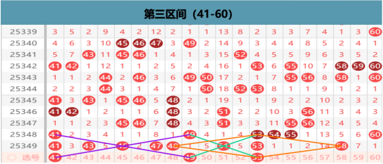 本区上期开出8码的区间出号,那么在本期我们优先考虑的就是三组同尾的出号点位,41 51和43 53和48 58的出号点位,在45 48 51的三同路的出号点位上我们优先考虑的就是分边的出号点位,在43 45 51 58的位置上我们考虑一码走重的可能性,这几个位置上我们各考虑一码的出号机会,小心点区间的回调,在很多的三组同尾的出号上,都是有可能出现区间的回调的,所以这个位置上我们要考虑容错的可能性的。