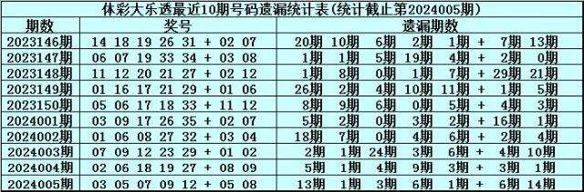 体彩大乐透第2024005期奖号为:03 05 07 09 12 + 05 08,前区号码奇偶比为4:1,大小比为0:5,和值为36,012路比为3:1:1,后区号码奇偶比为1:1,大小比为1:1。