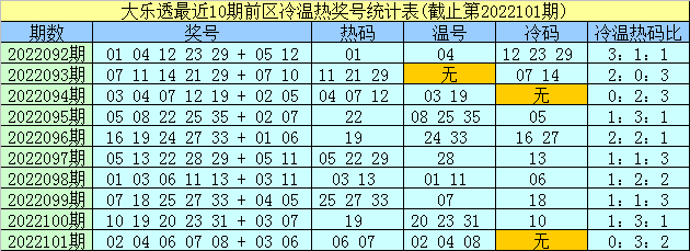 孟浩然体彩大乐透第2022102期奖号冷温热码统计(冷码:遗漏9期以上的号码,温码:遗漏4-9期的号码,热码:遗漏0-3期的号码)