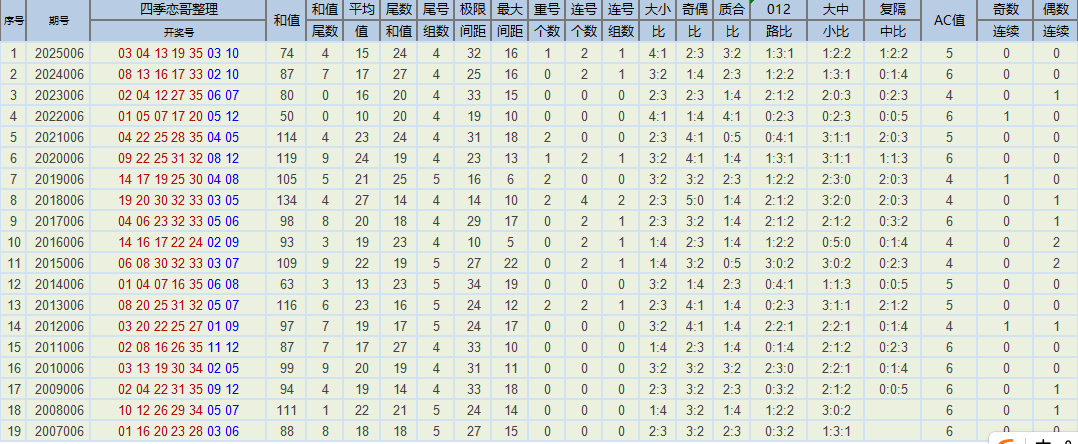 下图为大乐透彩种诞生以来每年的006期各类数据以及历年同日期开奖数据,各位大佬及彩友们请拿走~