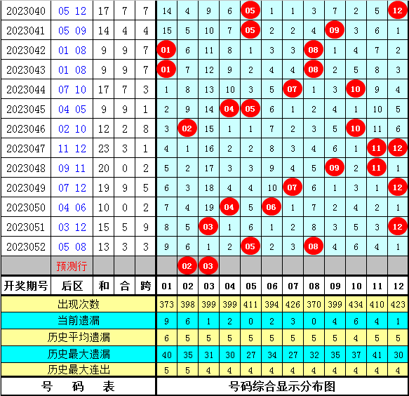 8。在历史同期开奖,后区跨度奇偶比为8:8,基本持平,本期预计出现奇数跨度。