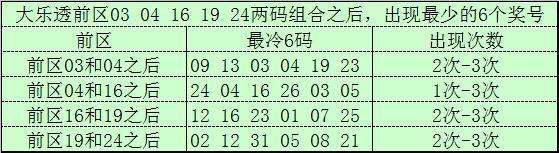 前区冷码统计:大乐透第23087期前区奖号为:03、04、16、19、24,截止第23087期历史上大乐透已经开出了2453期奖号了,在连续两码奖号中:
