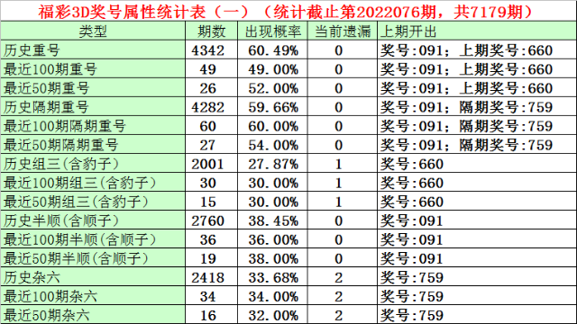 福彩3D第2022072期-第2022076期连续5期开出号码分别为:783-014-759-660-091。