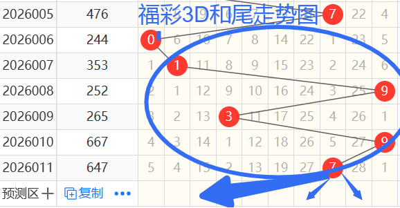 们依次是19397和尾,按照012路排序是10001路和尾,后面两期不是同路,今天就是0路2路的和尾,为什么这么讲呢,这个是个大概率的问题,也是根据长期的研究规律定的,准确率相当高,我定了0 2路的和尾,也就是0369258和尾,那么我们再来看和值,按照和值除3余数的话,可以分为余0 1 2路. 那么我们来看007期和值11余2,008期和值9余0,009期和值11余2,010期和值19余1,011期和值17余2,那么本期看和值看余2和余1,根据上面的和尾那么就只有10 13 16 19 12 15 18 8 和值。