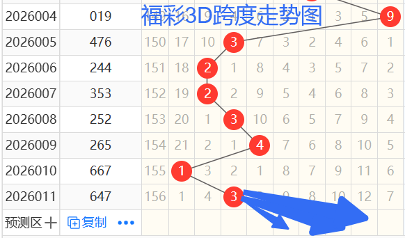 依次是23413跨度,按照路数转换关系来看,那么跨度我们暂定258147跨 ,本期个人比较看好5 7 8跨。