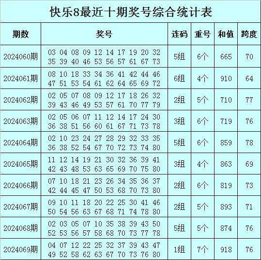 福彩快乐8第2024069期开出奖号:04 07 12 22 25 32 37 39 43 47 49 52 58 62 63 67 70 73 76 80,其中奖号和值为918,跨度为76,包含7个重号07、39、43、52、58、70、73,包含连码62 63。