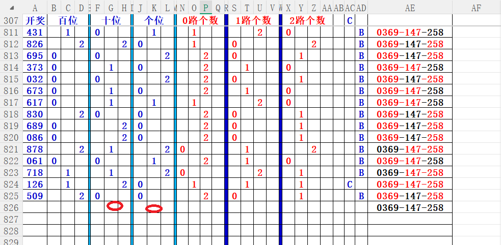 如上图56,012路分析0路出号的概率还是很大,本期可以从0路号入手做胆0369中选;看好369胆码。