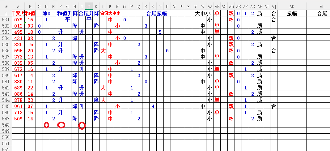 如上图3,和值升平降分析,和值降的概率大,大于14和值。