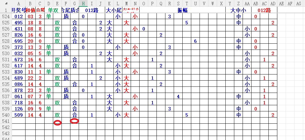 如上图7,012路分析-1路出号的概率还是很大,本期可以从1路号入手4代表78。