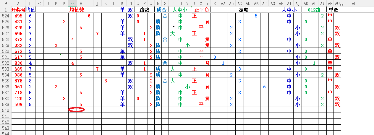 如上图1,大中小分析,均值小中大数比较好,也就是 3456 均值最好,重点:45。