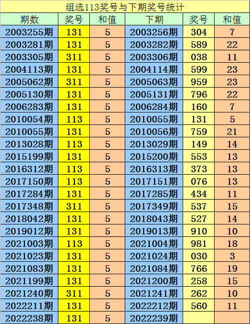 第2022238期3D奖号组选为:113,历史上该号码组选出现24次,下期号码分别为:304、589、038、599、959、796、160、131、759、149、553、373、076、434、537、527、910、981、030、766、258、262、560。