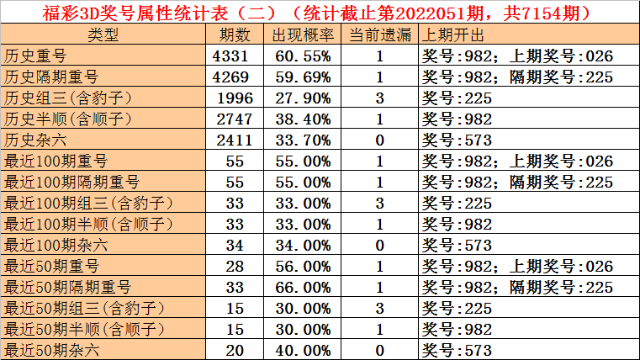 福彩3D第2022049期奖号为026,第2022051期奖号为573,隔期奖号没有出号。从统计表中分析,最近100期隔期奖号出现55期,出现比例为55%,最近50期隔期奖号出现33期,出现比例为66%,最近10期隔期奖号出现 6期,出现比例为60%,本期预计试机号继续出号。