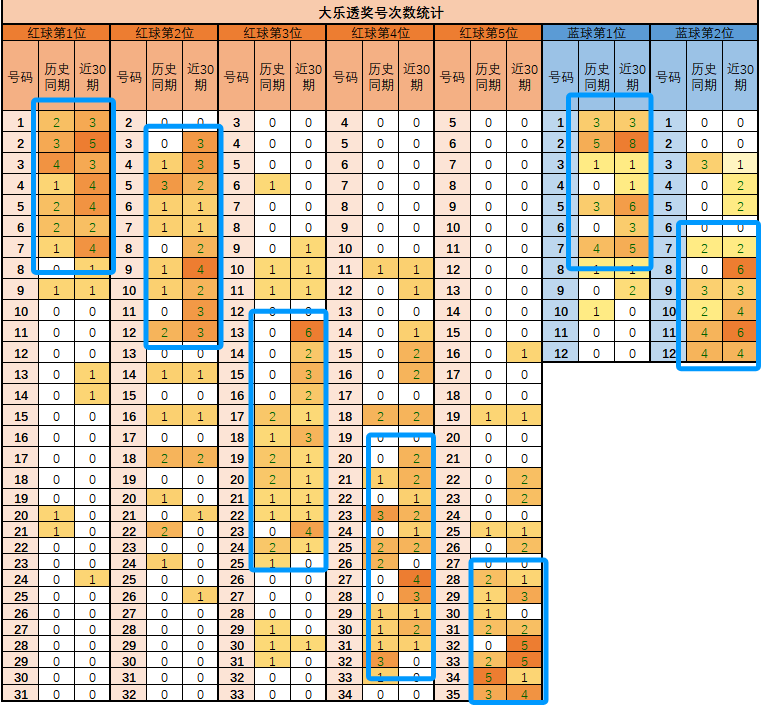 统计历史同期、近30期奖号频率,热门摸底,灵感来源