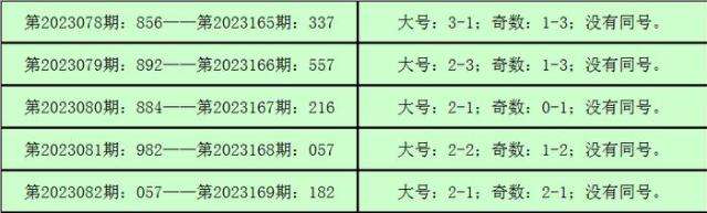 所以,3D第2023156期开出奖号:689,其大小比为3:0,奇偶比为1:2,012路比为2:0:1,与3D第2023170期奖号可能有同号。