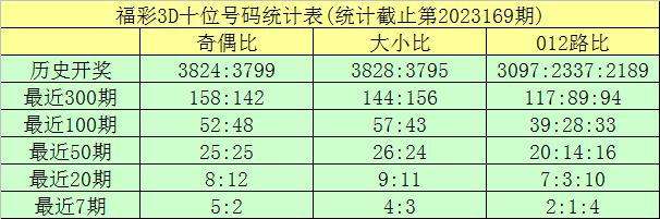 福彩3D第2023169期:奖号为:182。