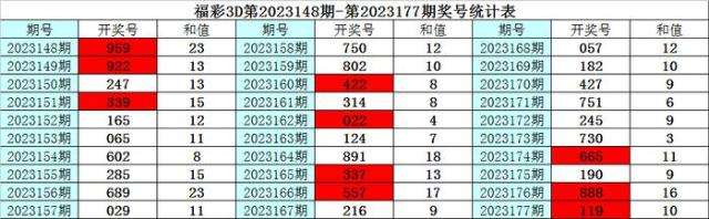 上期回顾:福彩3D第2023177期奖号为:119,其中奖号组选类型为:组三,奇偶比为3:0,大小比为1:2,012路比为1:2:0,和值为11,跨度为8。