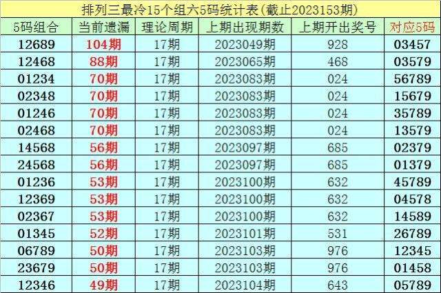 (4)排列三第2023153期遗漏值最大的十个5码组六组合解冻了0个;